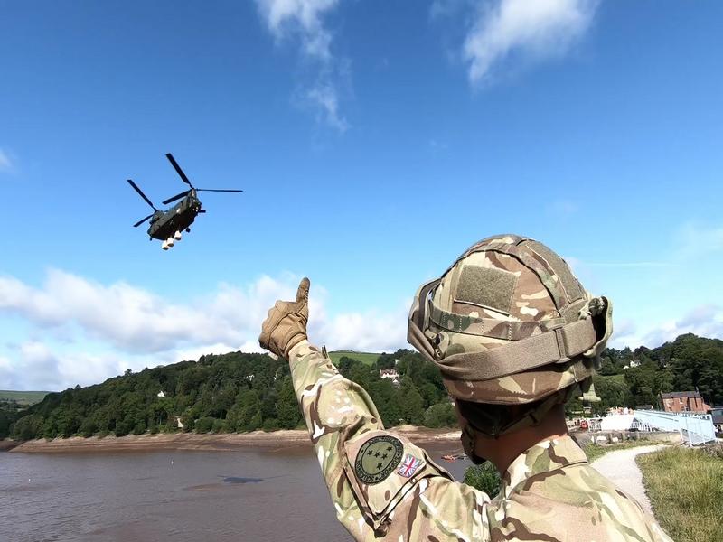(Chinook's rotors buzzing)